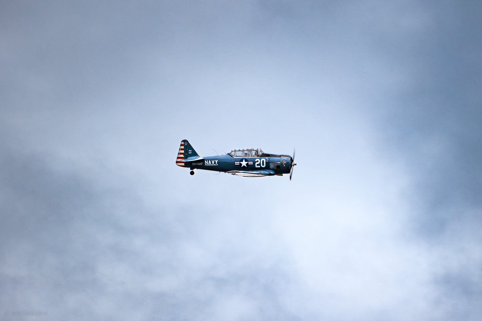 In memory of the AT-6 Texan SNJ-3 warbird and its crew (16 Oct 2024, Räyskälä). The value of this photo has soared not only due to the plane's historical significance and unique restoration, but also because no one can see or photograph it anymore. Captured at the Pori Airshow in 2022.